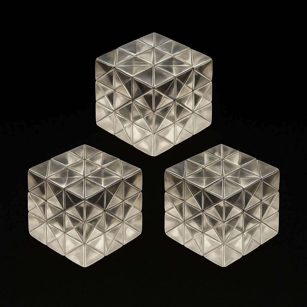 The Trinity Pack includes three 1-inch Lemurian quartz 369 Power Cubes — each precision-crafted with 54 four-sided pyramids across 6 sacred sides. This set represents the cosmic trinity: mind, body, and spirit.